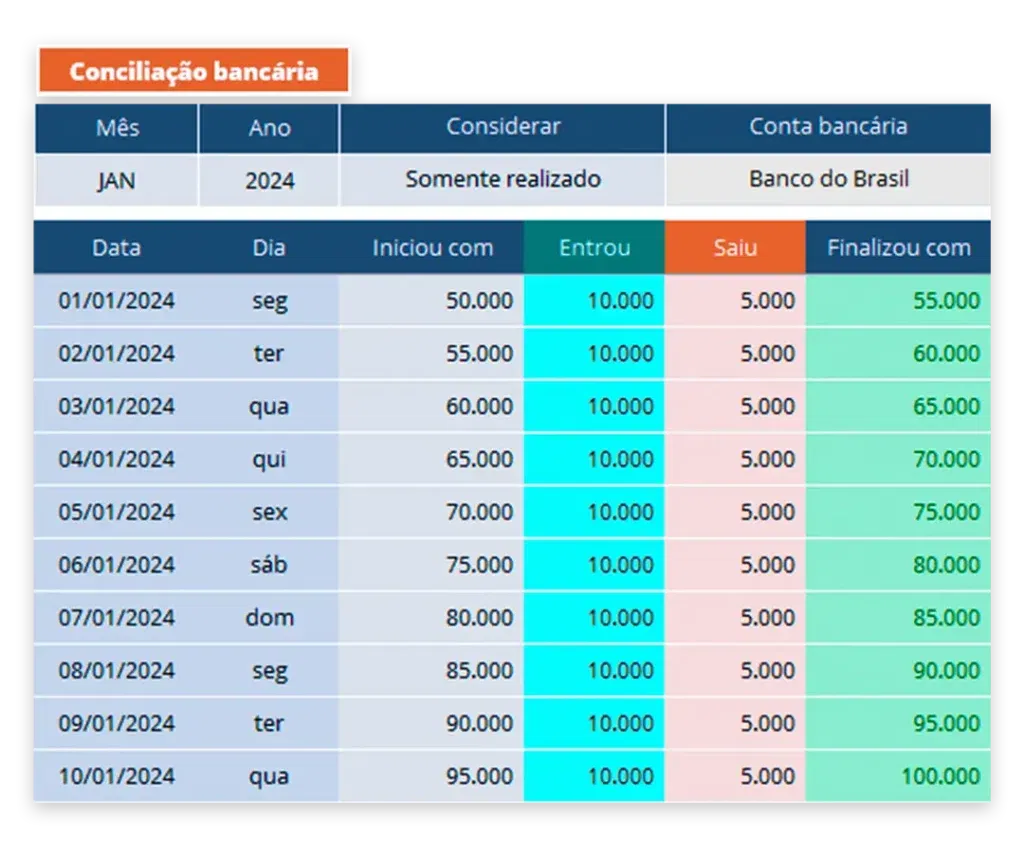 Tenha o controle de tudo que entra e sai nas suas contas bancárias diariamente, compare seus registros financeiros com seus extratos bancários garantindo controle, precisão e segurança nas finanças da empresa.